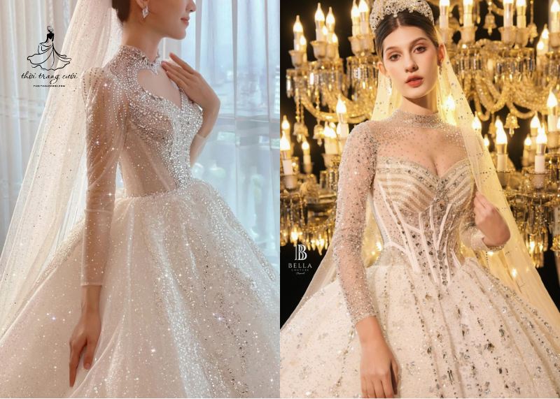 Bella Bridal là một trong những địa chỉ may váy cưới đẹp tại TPHCM được nhiều cô dâu lựa chọn nhờ phong cách thiết kế hiện đại, tinh tế và dễ ứng dụng. Các mẫu váy tại đây thường mang form dáng xòe nhẹ, chi tiết tay ren sang trọng, rất phù hợp với xu hướng cưới hiện nay.