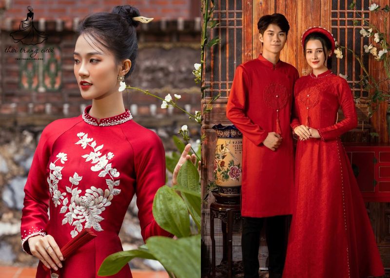 - Áo dài cưới đôi: Xu hướng cô dâu và chú rể cùng diện áo dài đồng điệu về màu sắc, chất liệu hoặc họa tiết đang ngày càng phổ biến.